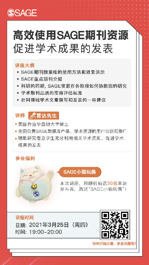 SAGE期刊数据库在线讲座:高效使用SAGE期刊资源,促进学术成果的发表