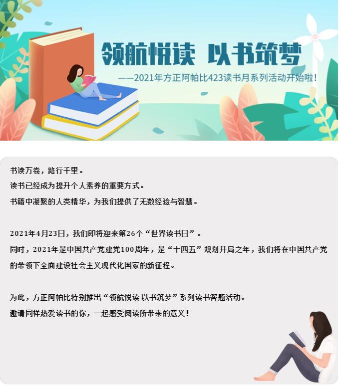领航悦读 以书筑梦——2021年方正阿帕比423读书月系列活动开始啦!